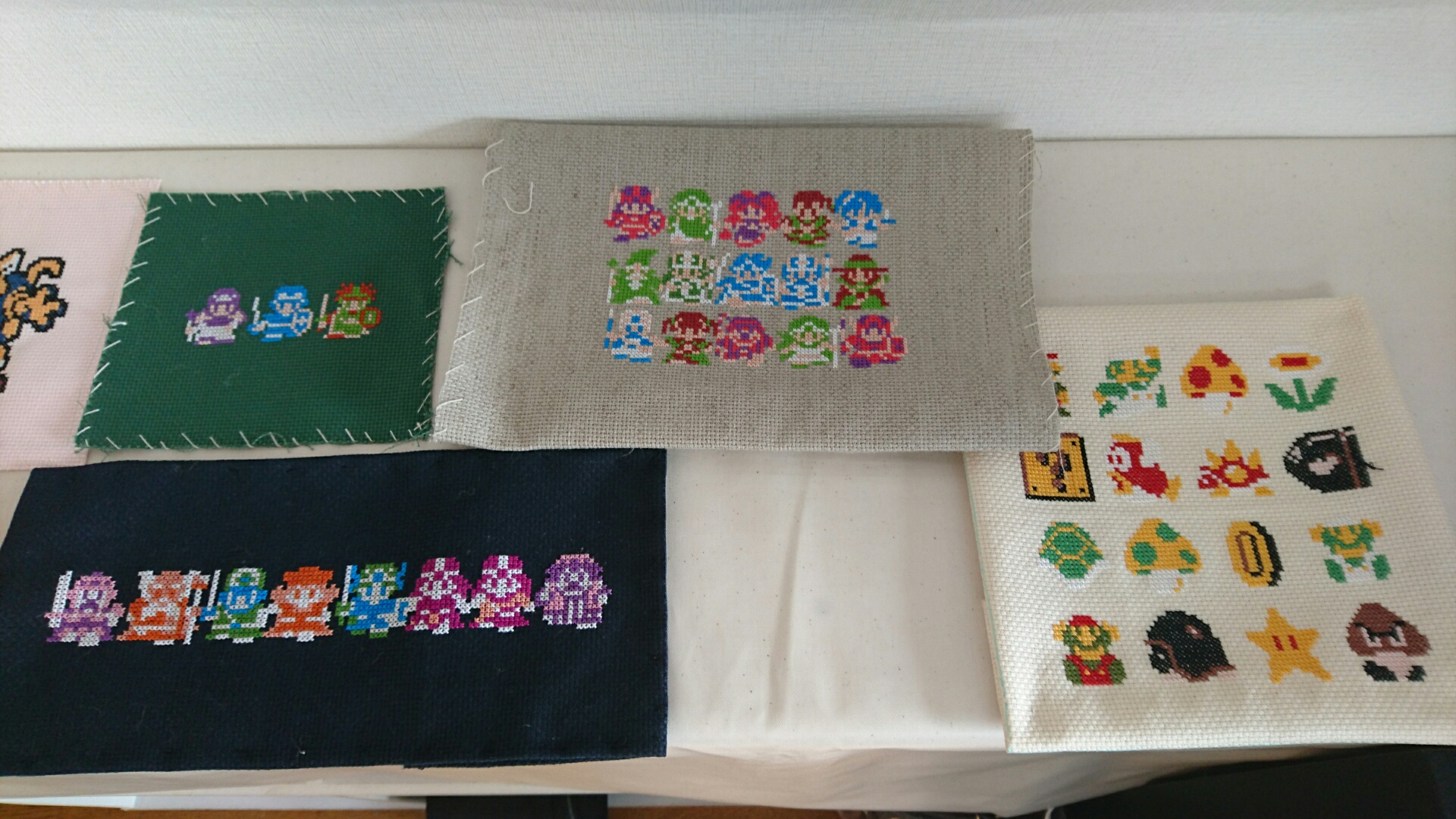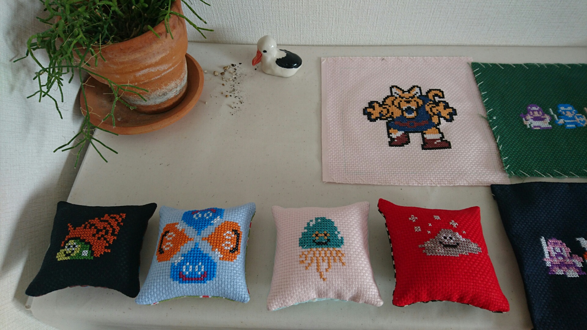 ドラクエやマリオのクロスステッチのサンプラーやピンクッション、