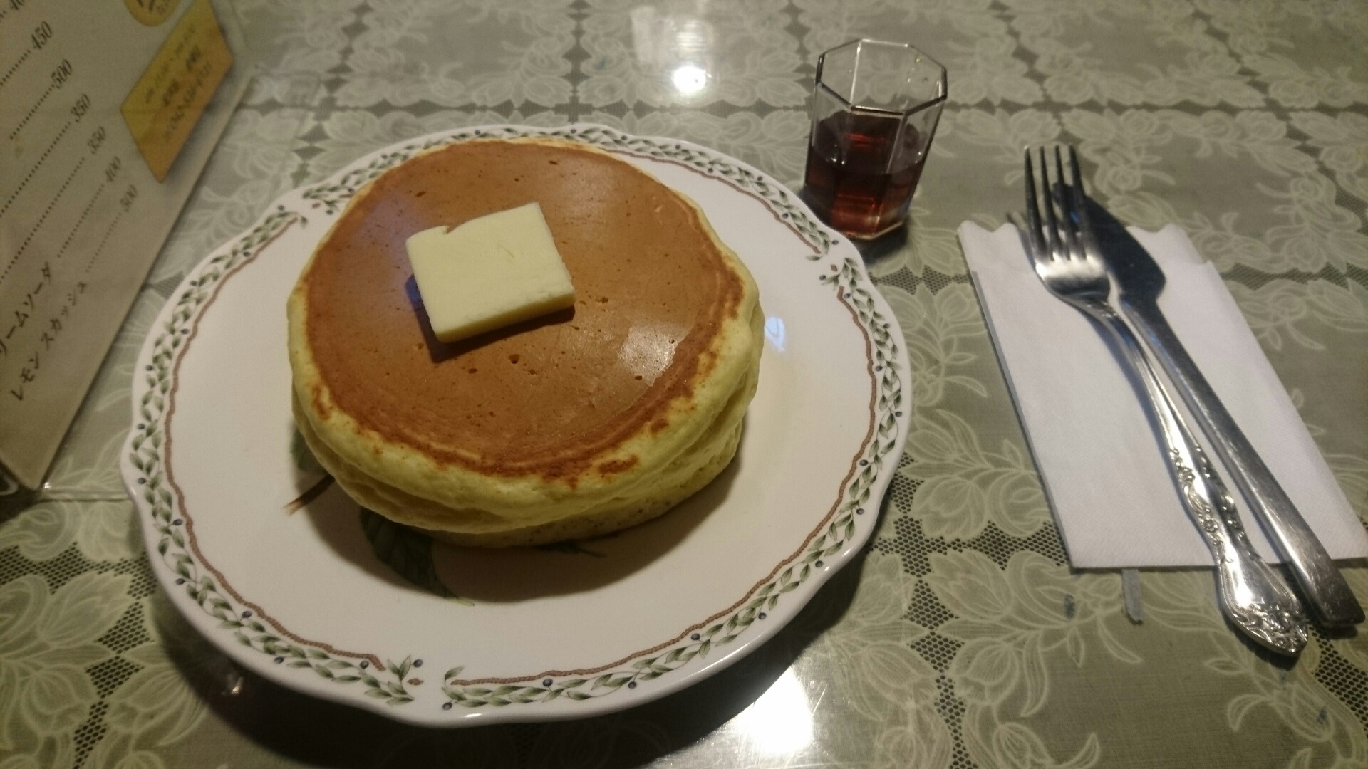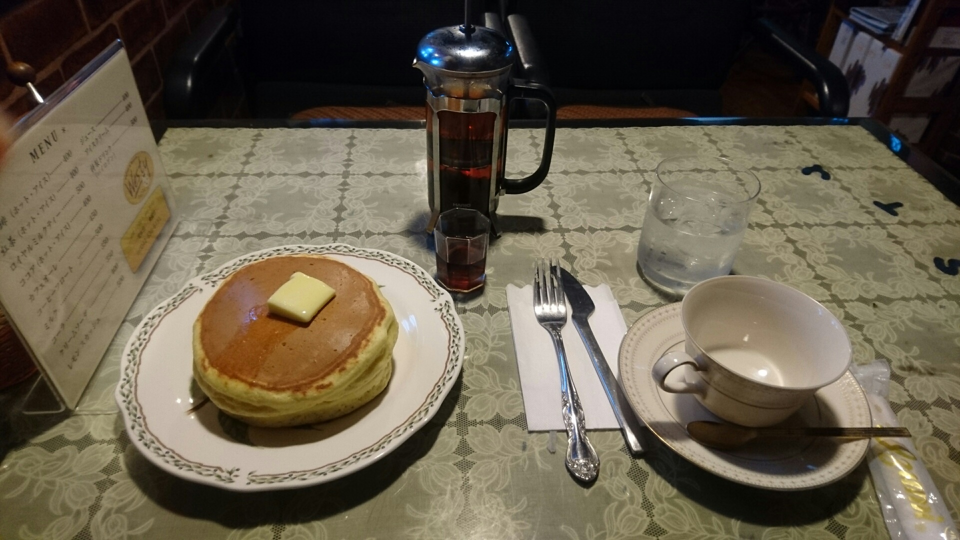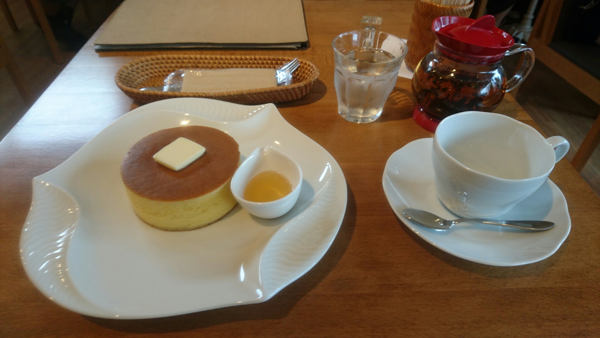 席についてホットケーキと紅茶を注文。