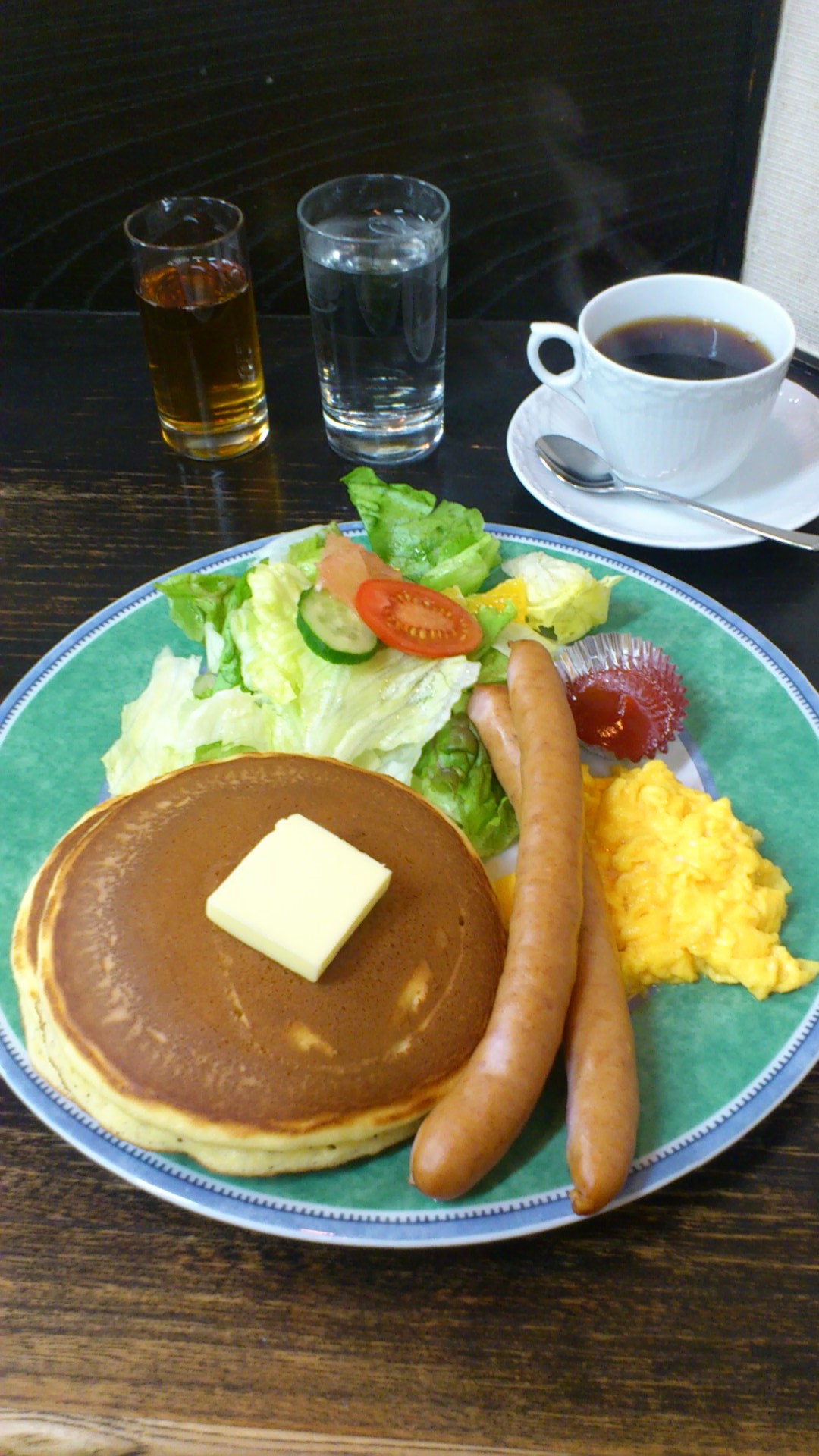 レギュラーメニューだとソーセージのみかスクランブルエッグのみかなのでとってもお得(´∀`*)その後お客さんが続々と入ったのでホットケーキもどんどん焼かれていったのですが