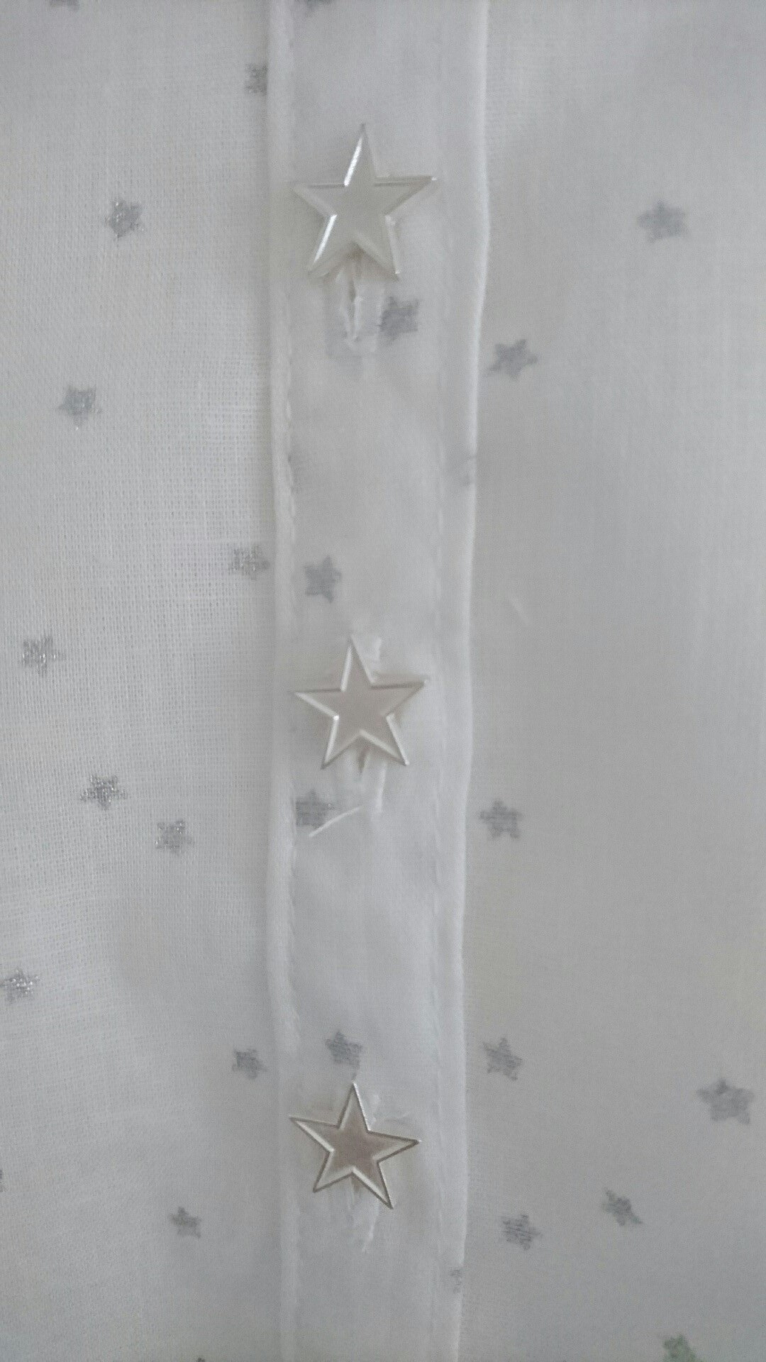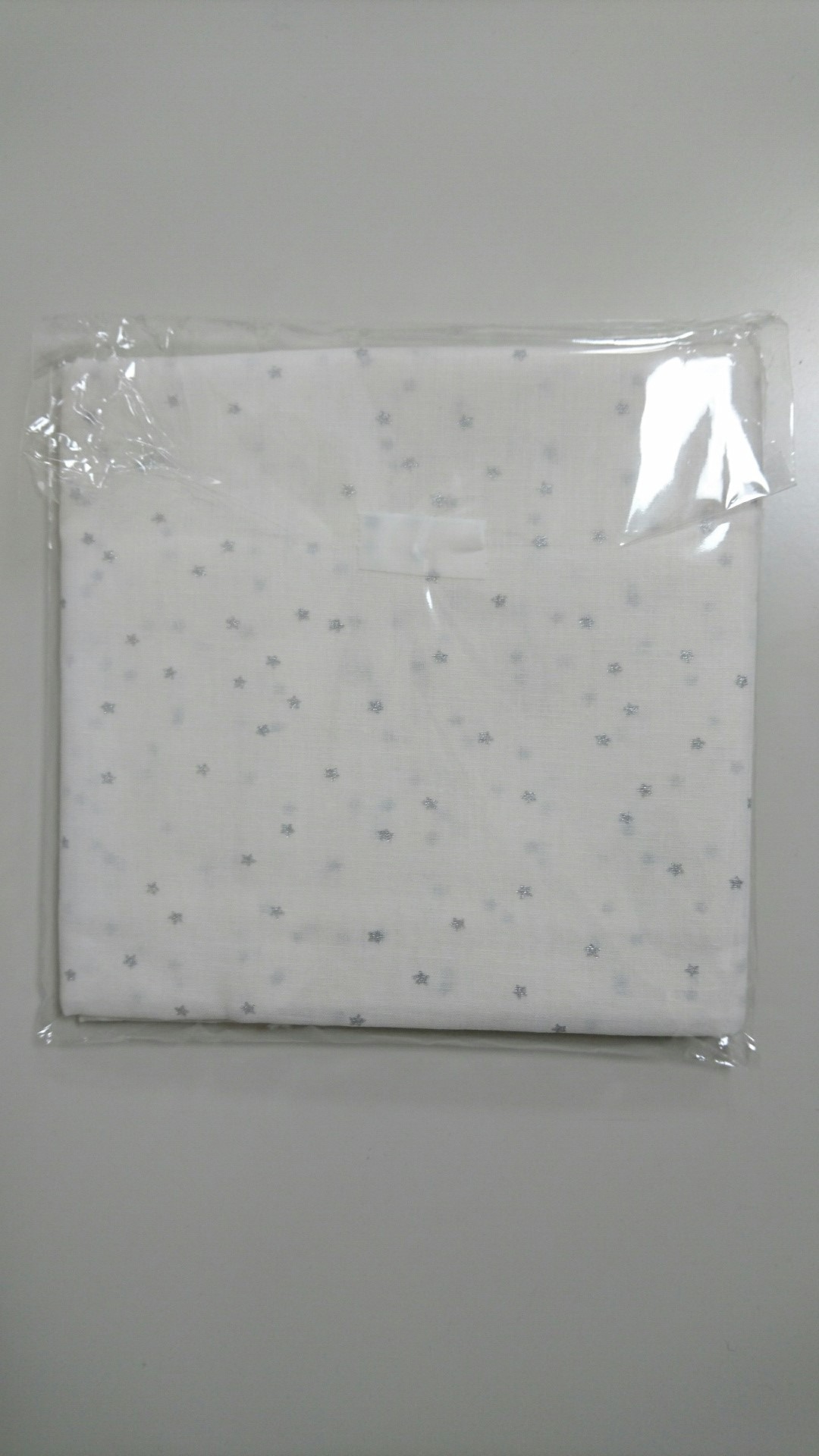 白の綿麻にシルバーのラメで小さな星がたくさんプリントされている