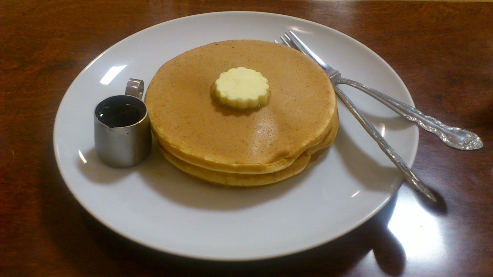 ホットケーキの生地は甘さ控えめでふかふかした食感でした。