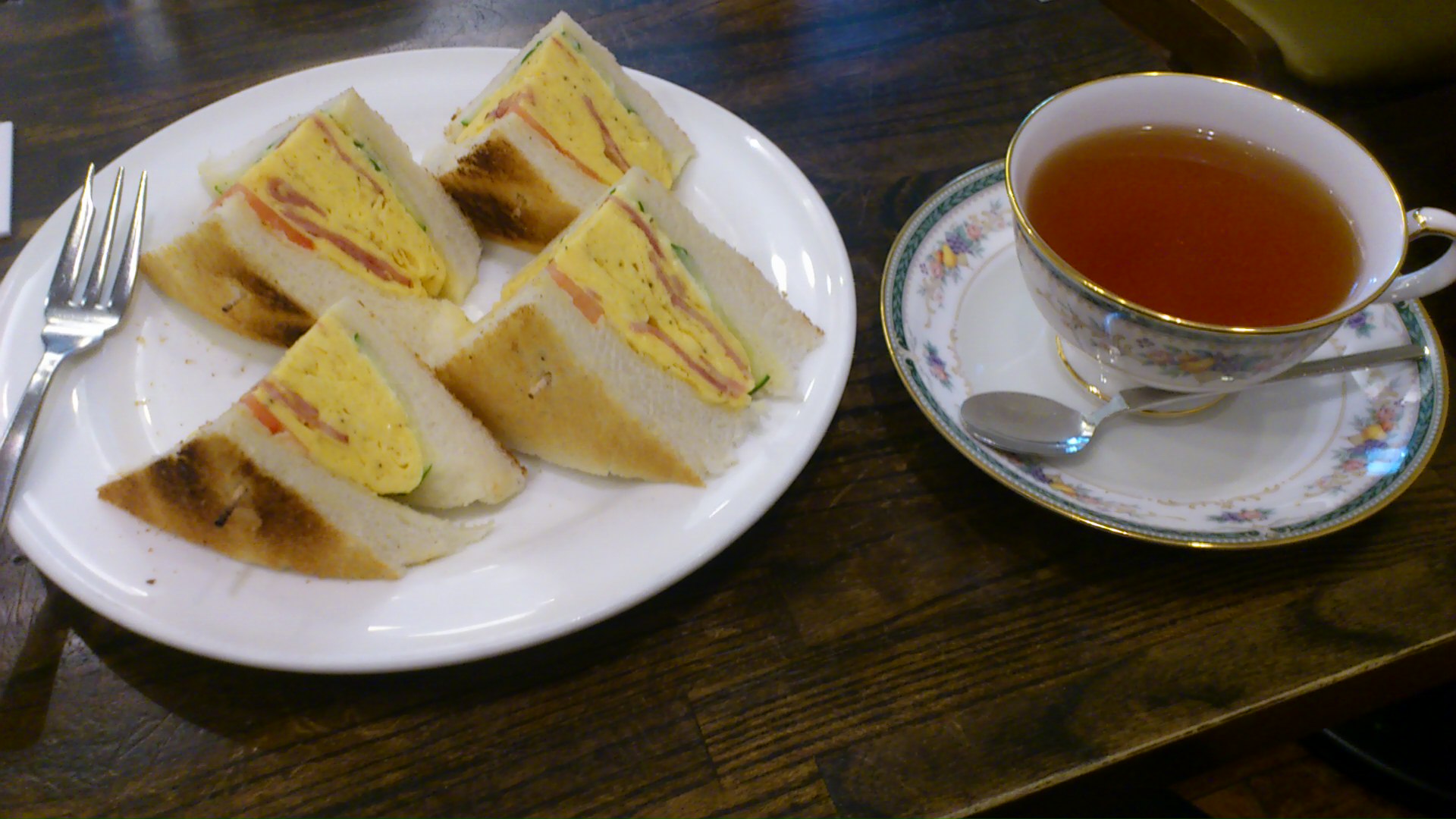 厚切りトーストに厚焼き玉子が挟んであるボリューミーな一品!