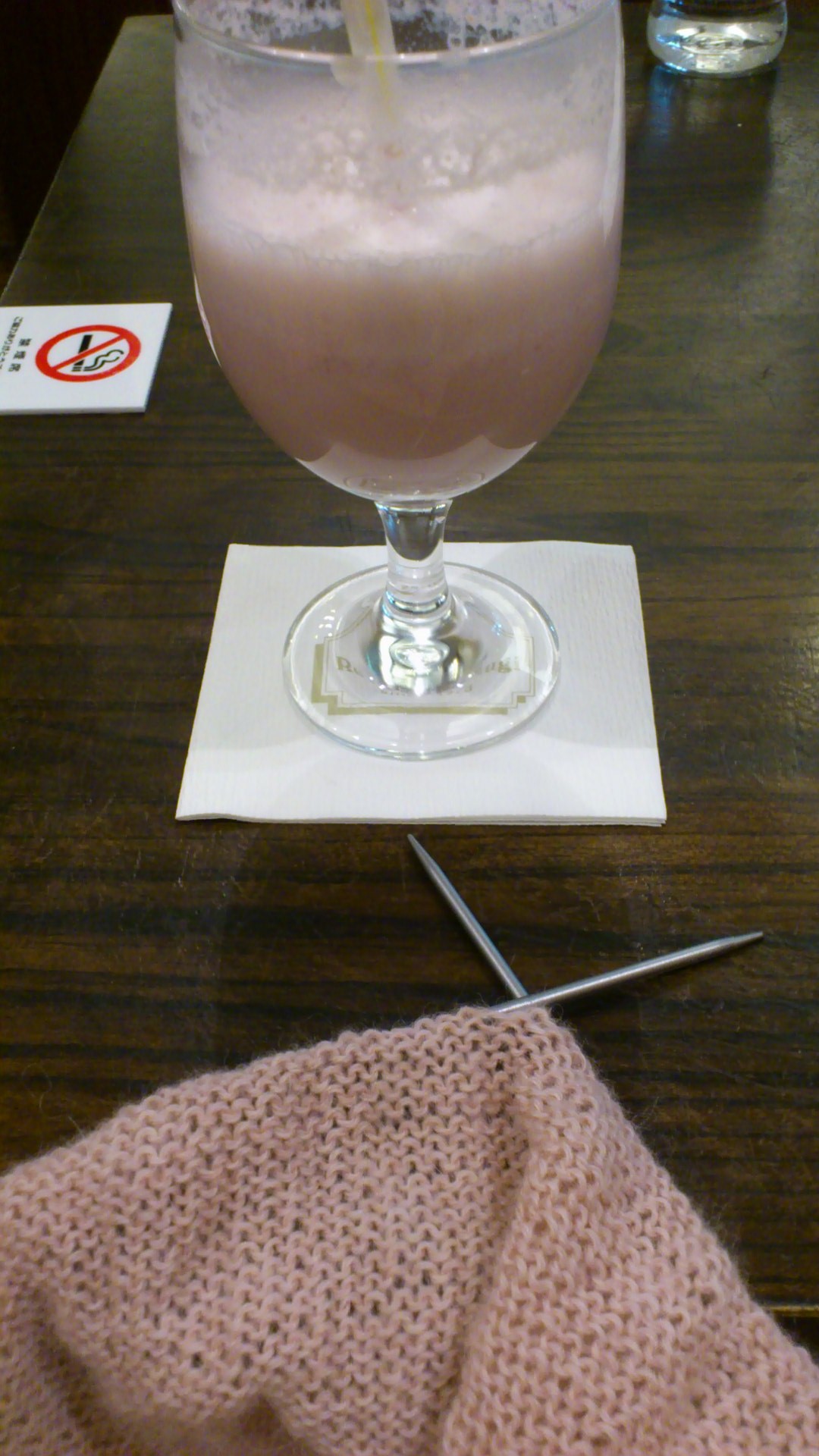 なお、そのときはピンクのドルマンをモバイルドット編み編みしてたので