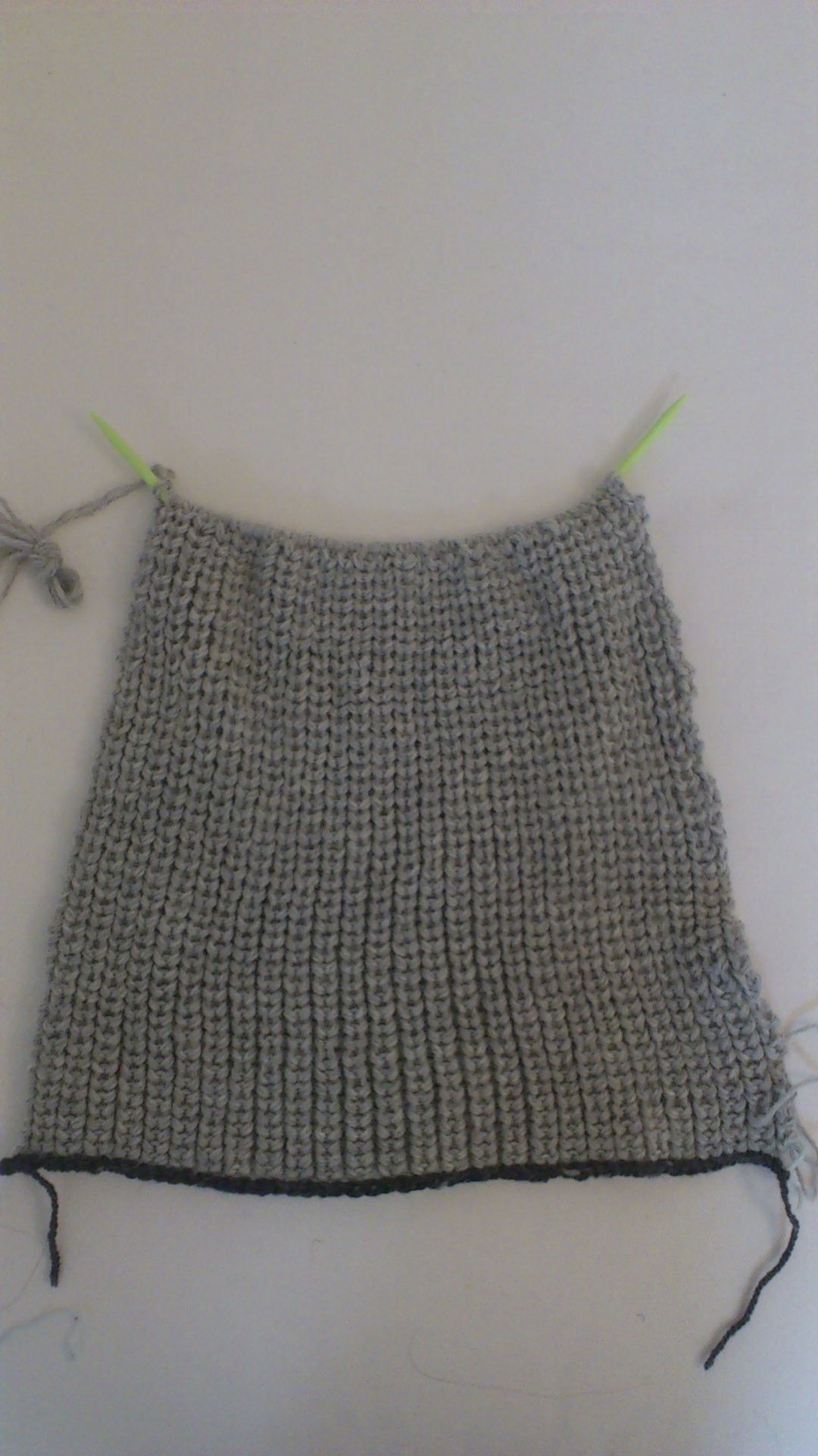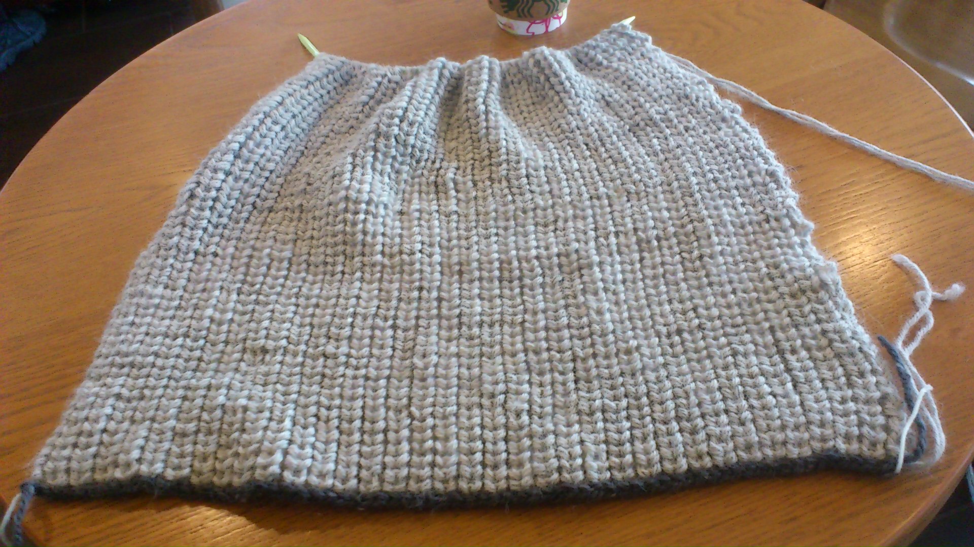 頭の方に行くにつれて細い号数の針で編んでいくという