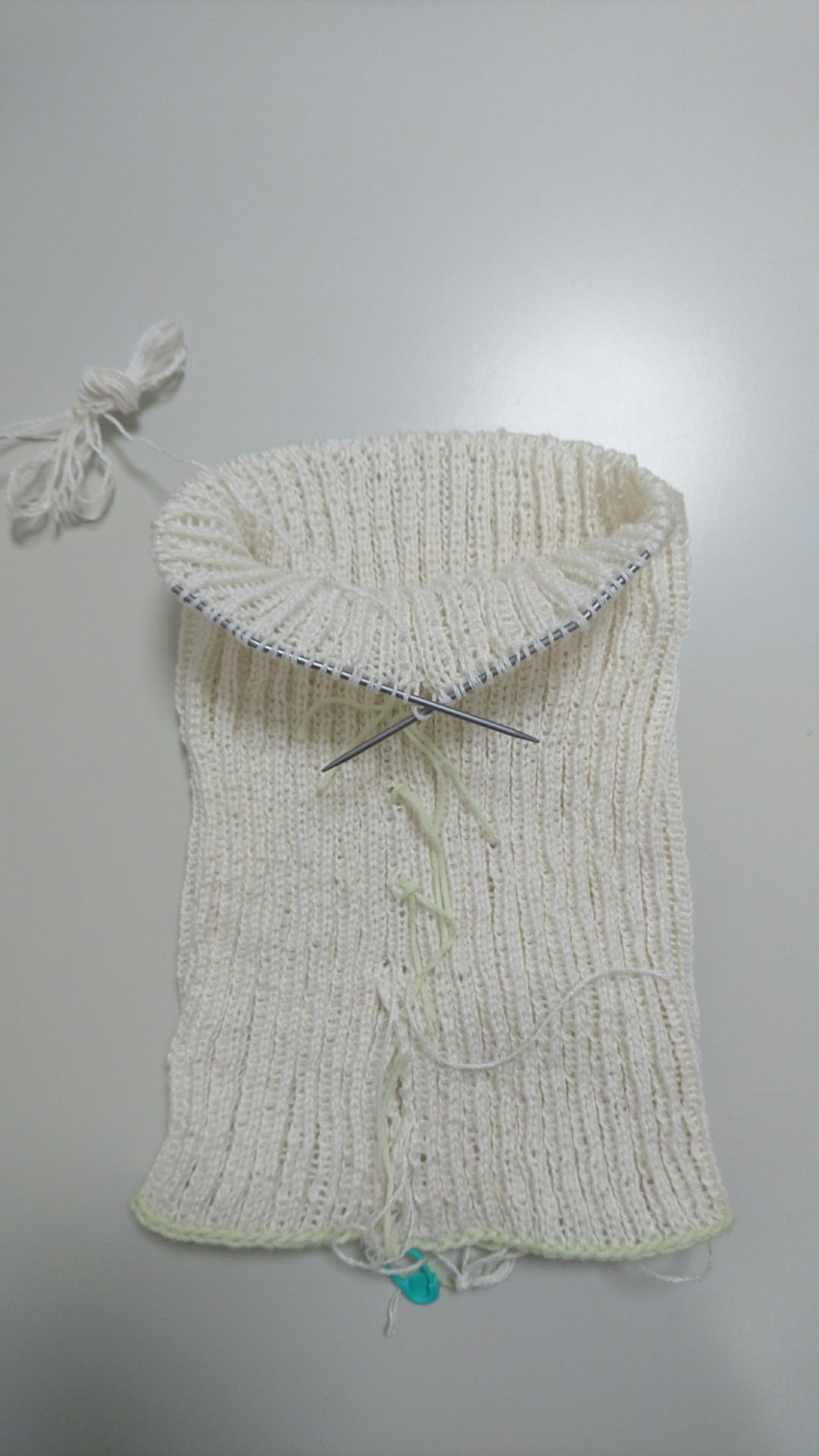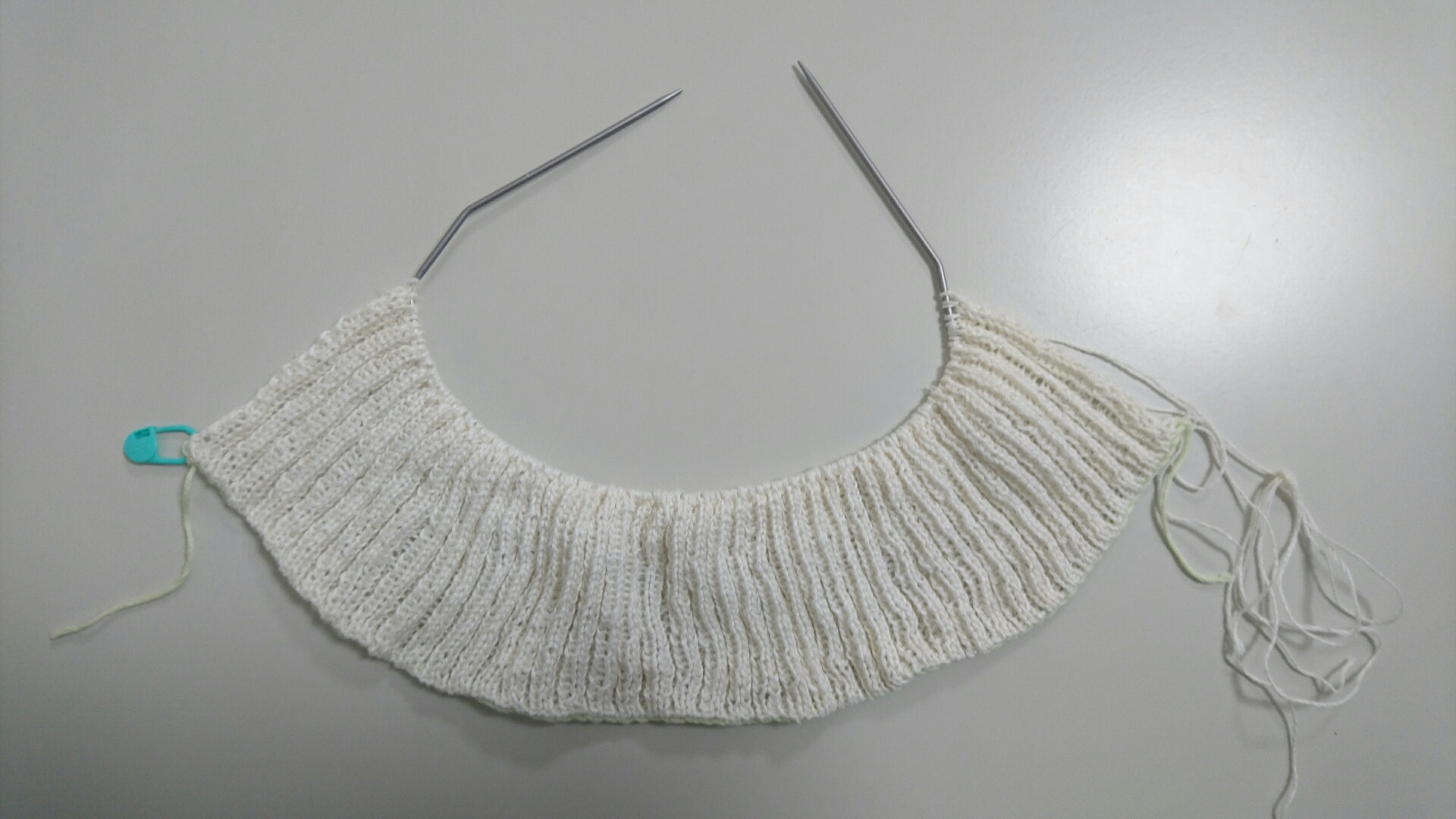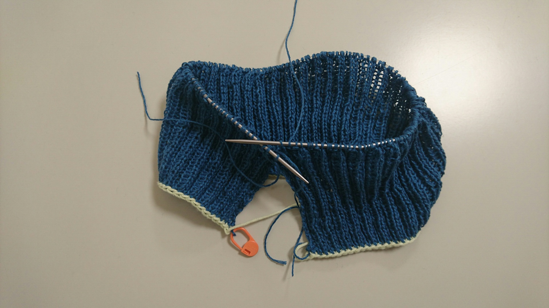 さて、今編んでるものですが、白に続き、ブルーの方も
