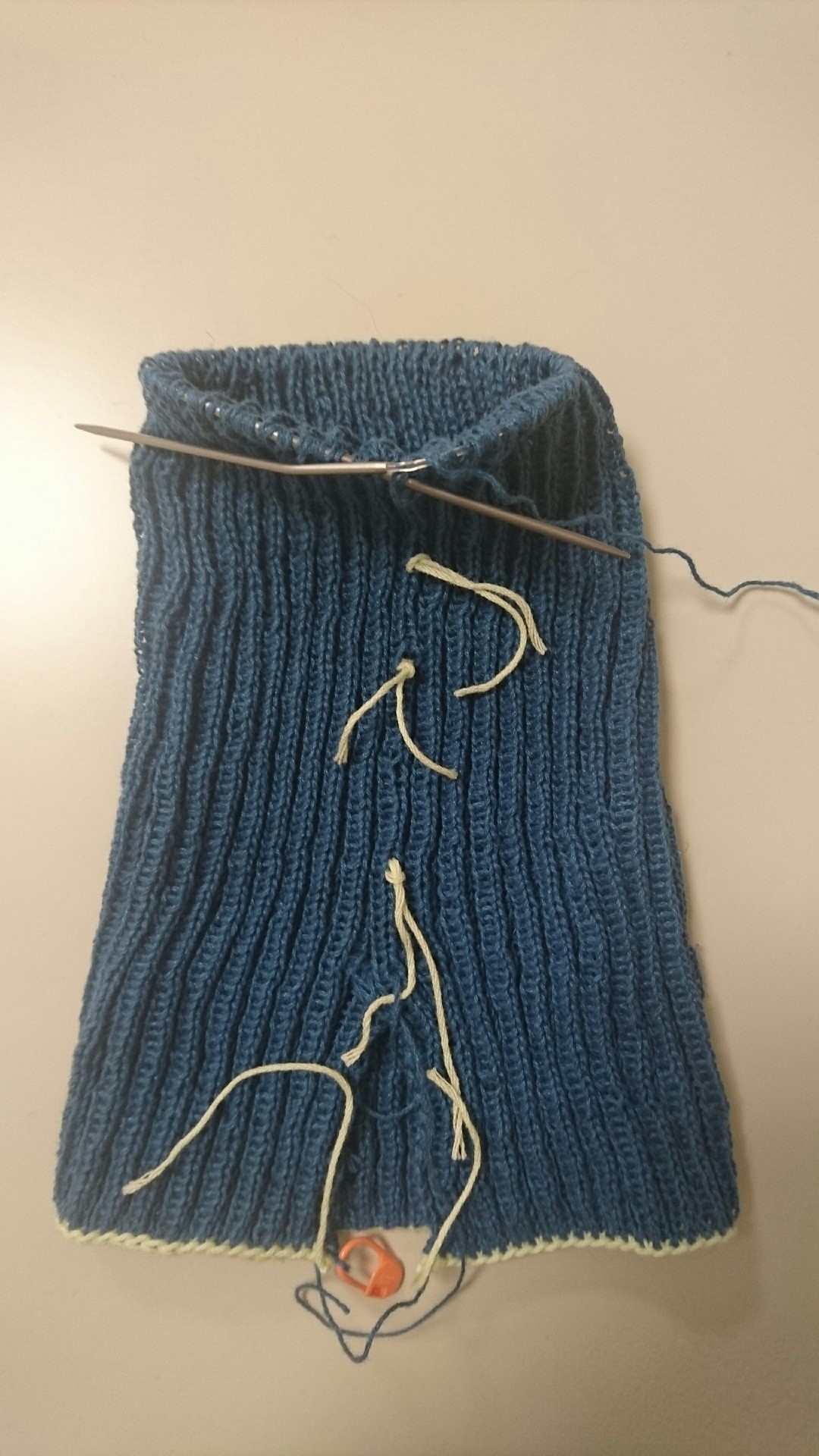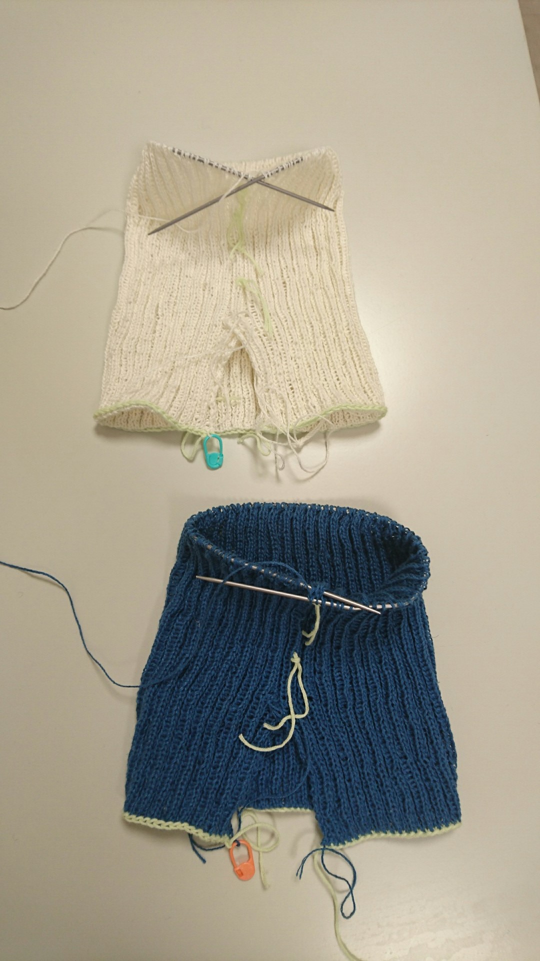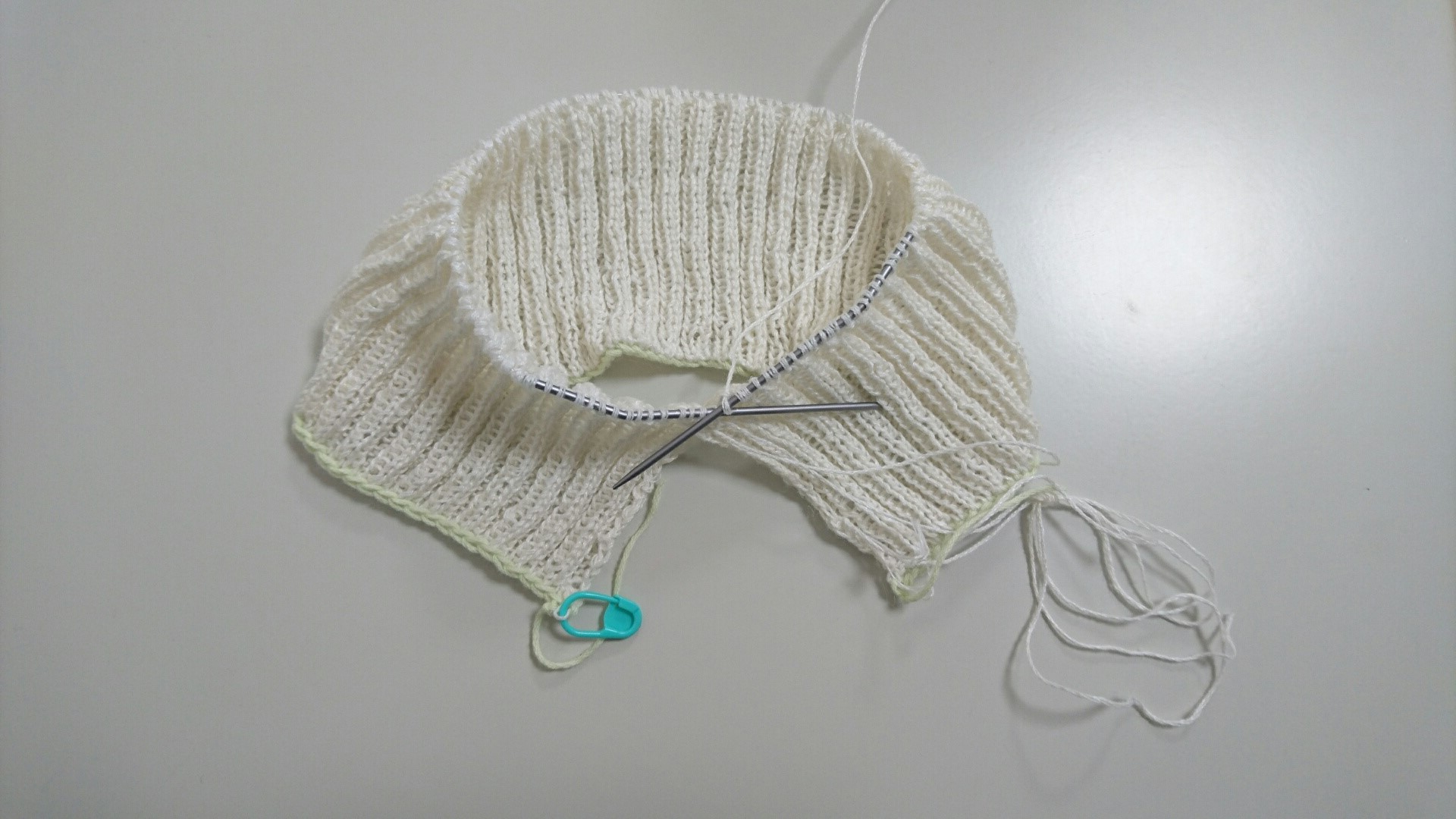 さて、今編んでるものですが、白に続き、ブルーの方も