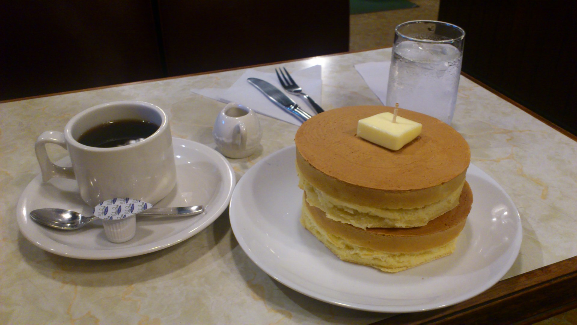 朝早くからホットケーキを頼めるか心配しつつ注文しましたが