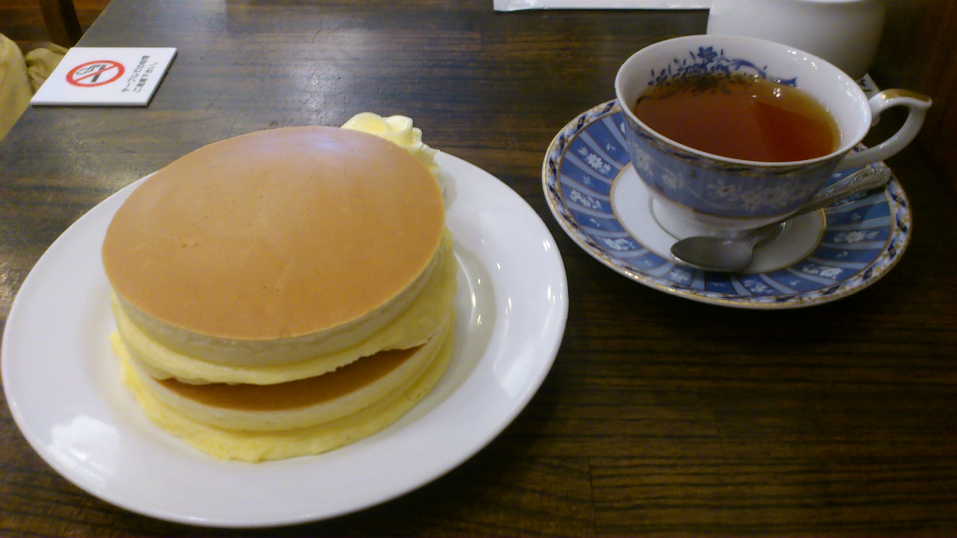 飲み物を頼むとプレーンホットケーキが150円で食べられるという