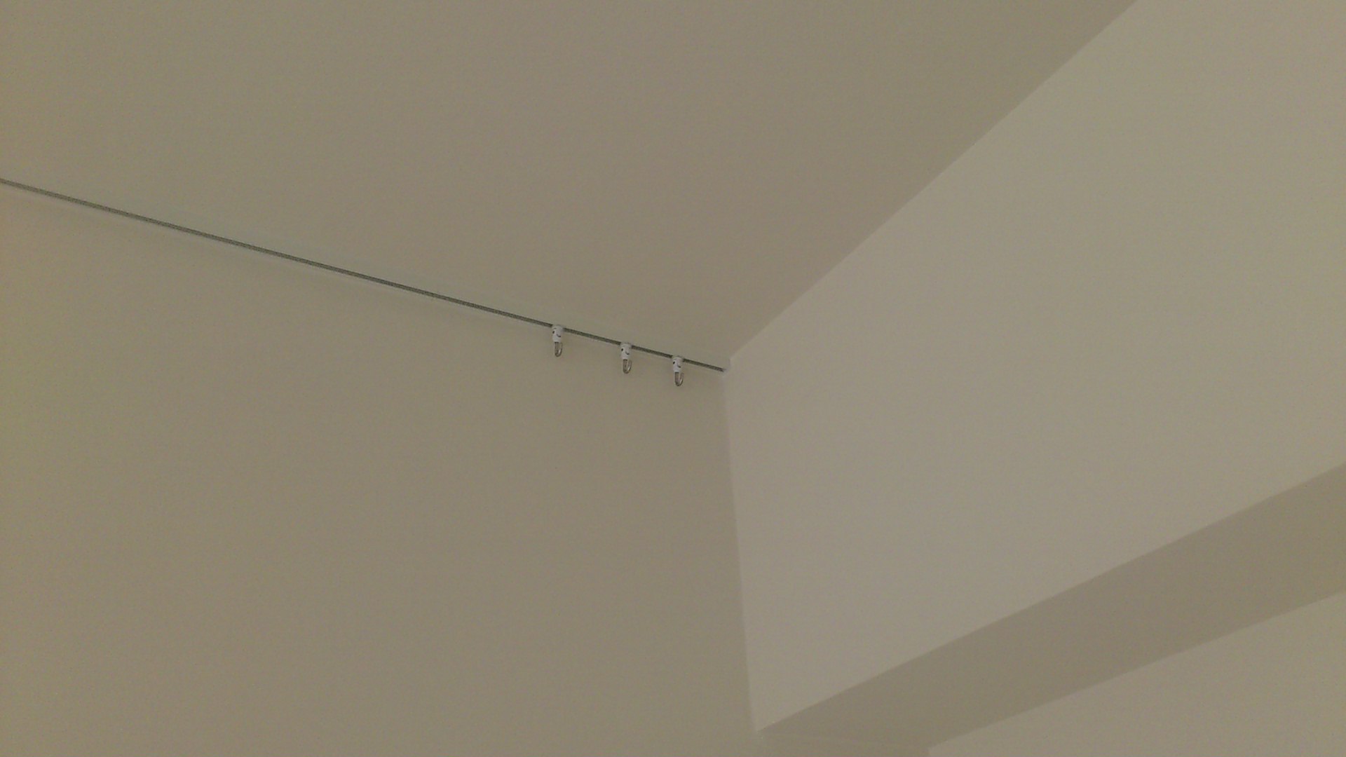 ここは室内と雰囲気を変え、グレーの壁紙にしました。