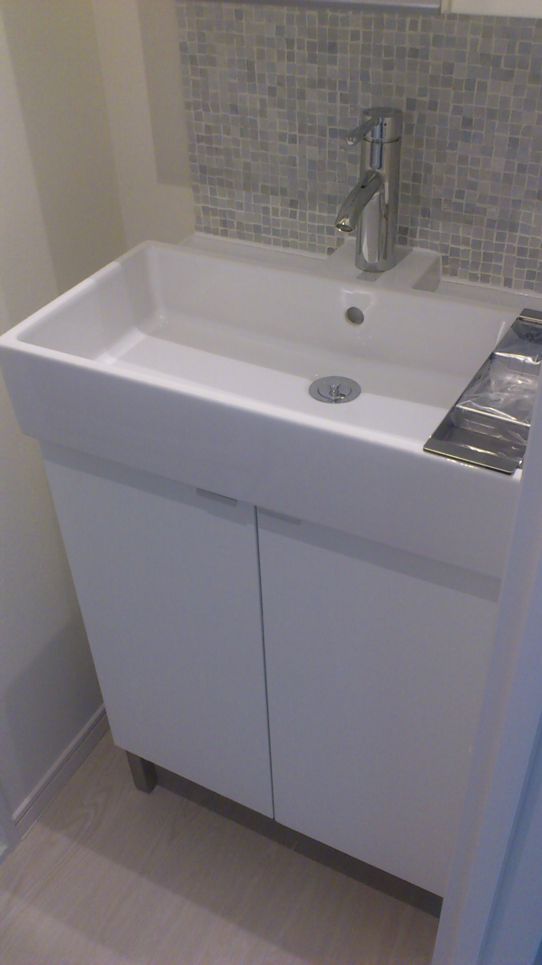 同じ色だと私がつまらないので、キッチン周りの白とグレーを採用です。