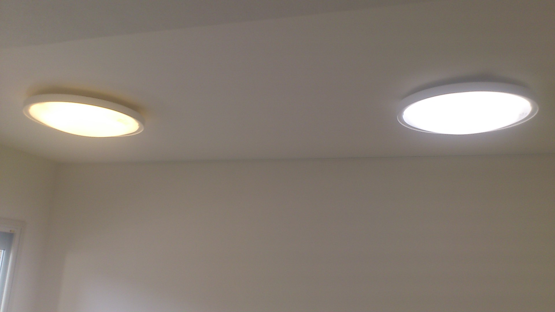 リビングで作業や読書の際には右の白い光、
